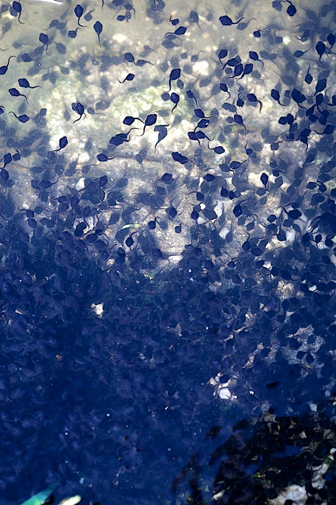 While trolling through some of my pics I found this one of a puddle in Barbados. I was hanging around waiting for my kids to finish surfing and noticed a blackish squiggling mass in the half dried out puddles. Thankfully the light of the sky shone into the water and gave me the opportunity to capture something really unique. One child filled a baggy and took them home, heard later his toilet tank was full of frogs, now that is Bizarre!