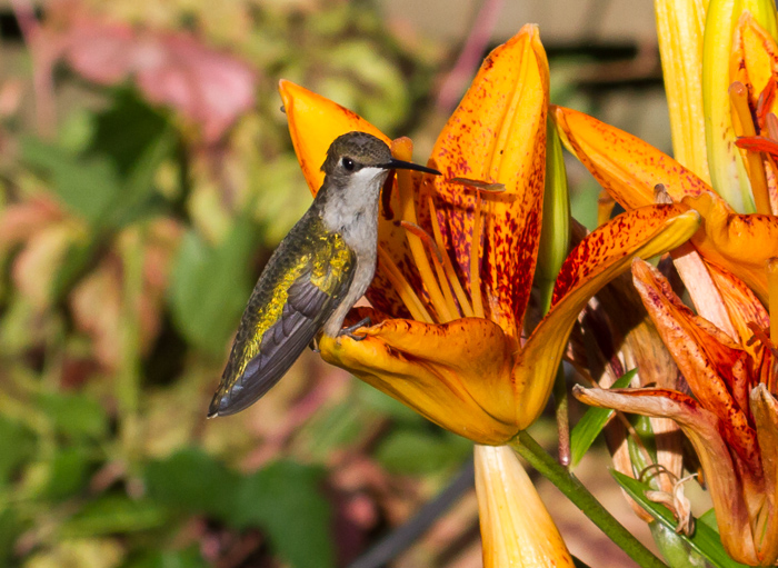 This is my first go at a hummingbird. The little guys are fast. He perched on a lily long enough for me to get a good shot the one time. I beleive there is a male and a female here. The first shot is the only one I was able to get showing the ring on his neck. need to get a better one like that.