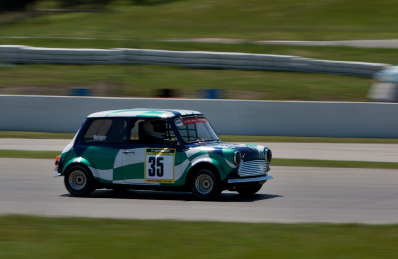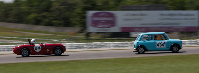 AT - My favourites (cars not necessarily pictures) are the MGs and the Minis. I had to laugh at the green Jaguar. It doesn't look too racey, It's like somebody is out for a luxury drive around the track.
