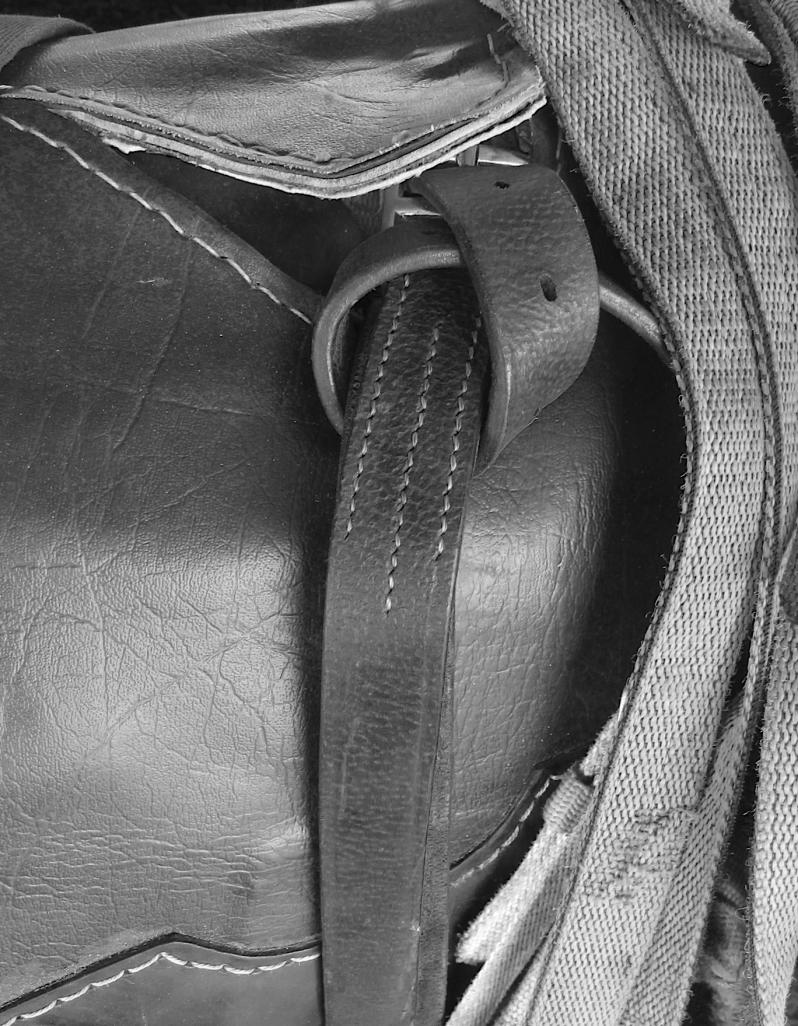 I love horses, and I am familiar with almost every part of the equine experience including equipment. So when asked to photograph a barn I found myself needing to look at familiar things in a different way. I look for something special about that object, something unique in its texture or position. Something the camera will isolate and create a quietness that allows the unique quality to come forward. This is a racing saddle that was slung over a stall door, is not the most elegant of saddles but it's purposeful construction with strong materials like the webbing, large stitches and durable synthetic stirrup leathers painted a picture of function, strength and simplicity. Still doesn't seem enough hold on the exercise boys who tackle the spirited two year olds, think raw talent helps there.
