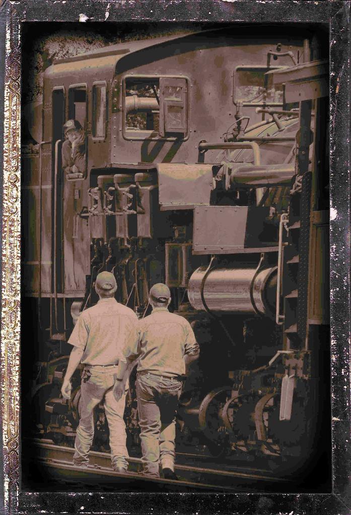 I am calling this "Consultation" because this scenic steam engine rail road ride had a break midway on the trip...the brakemen approached the conductor to have a mid trip consultation.