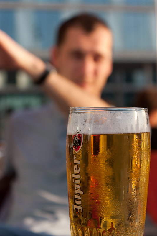 I really don't like portraits that obscure the subject of the portrait in any way so not being able to see his face is a big issue for me. All I can really see is that it is most likely a man and he is sitting at a table where beer is served. I don't know if he's drinking it. I don't know what he looks like or if he's liking the beer or anything so as a portrait I don't think you captured the subject.