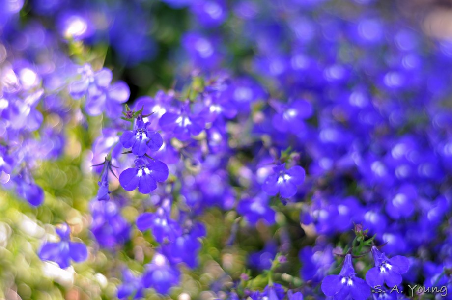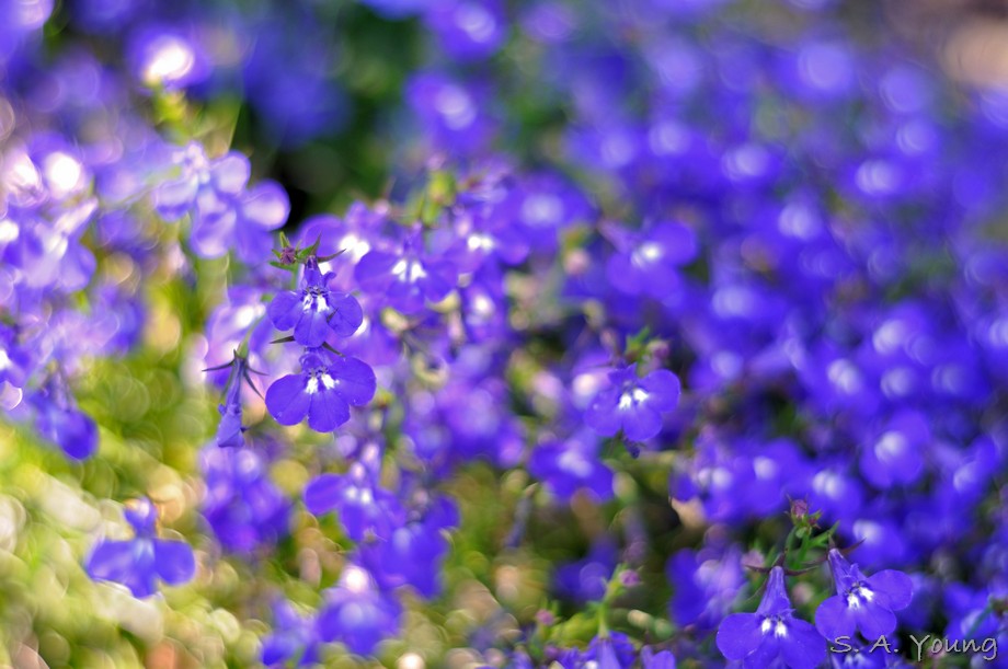 Marko, I tried burning it, but there's just nothing there in a couple of spots, so it was an ugly mess. I switched to cloning a couple spots, bringing the lower corner down, bringing everything else up just a hair, and warming the color a little more. Seems to work better; see what you think. To add to the info, I was messing with close-up filters again. The plant is lobelia. This particular type is a very low growing ground cover. The flower is about 3/4 inches wide, and it doesn't grow much higher than 3 inches.