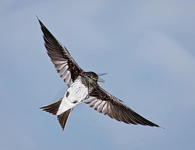 Attached is one of a number of photos taken at the Chicago Botanic Garden this past July. Purple Martins were catching dragonflies and bringing them to their nestlings in the martin houses.