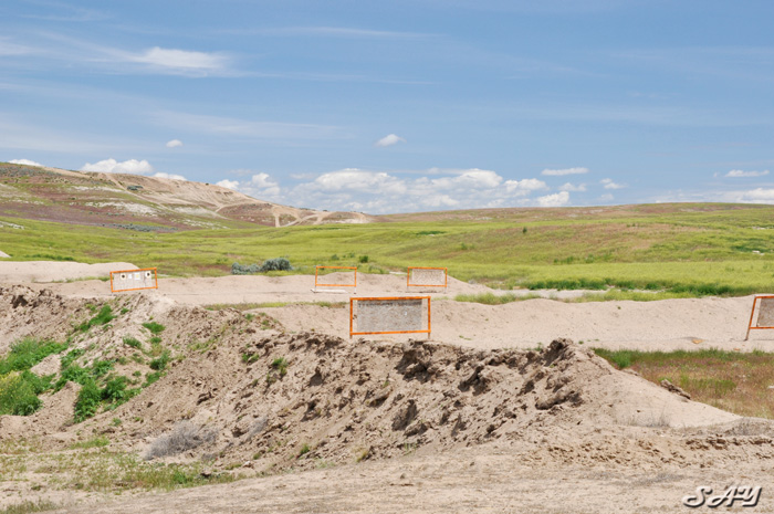 The setting: one of the shooting ranges at Parma Rod and Gun Club. From prior experience I knew the bright dirt and bright sun made it hard to avoid glare.