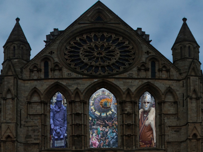I have done other variations including using less of York Cathedral so the pictures of the Purple Man, Street drawing, and Viking Jorvik are larger but question is this 3 pictures or 4 pictures and will it count as a Triptych? The other idea is to use a more simple divider.