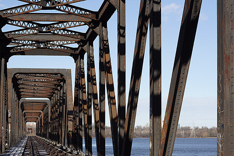 Rust and graffitti-covered abandoned rail bridges might be an eyesore for some, but they can be very nice subjects for photo shoots. The Prince of Wales Bridge (named for Queen Victoria's son who later became King Edward VII - he is Queen Elizabeth's great grandfather) is near downtown Ottawa and spans the Ottawa River to Gatineau, Quebec.