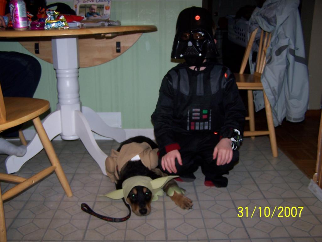 We totally did that to our dog too, when my son was Darth Vader for Halloween......