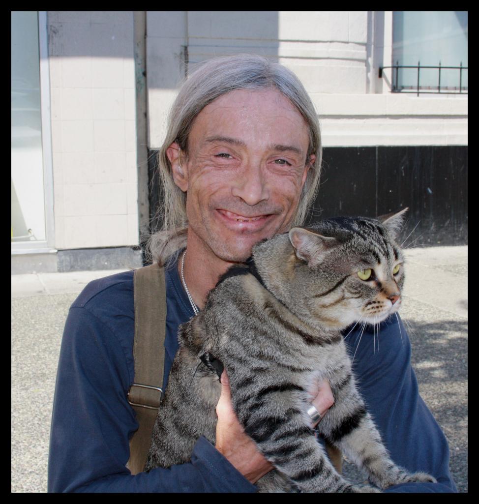 Found this guy on the street with his cat. This cat had the fatest face!