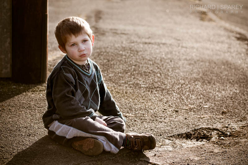 The light is beautiful this time of year in the late afternoon. I got this one of my son while we were playing outside. He was sulking because he had just fallen off his scooter.