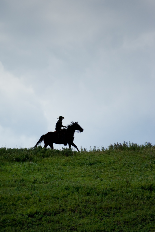 Or do y'all prefer a non- silhouetted version? They both started out a bit underexposed as they were at an odd angle to the sun and I also wanted to preserve the sky, but the 1st one was closer to silhouette than to correctly exposed so I just burned it a bit more. The 2nd one I probably could dodge a bit to bring out more detail in the cowboy. The shot orientation is also different.