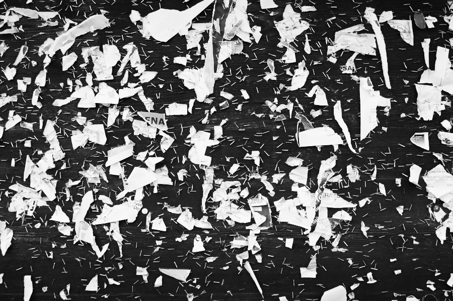 For the second, looks like an informal bulletin board. Paint a piece of plywood, fasten it to a couple of poles, and let people staple their notices on it. The paper gets pulled off when the notice expires, but the staples get left behind.
