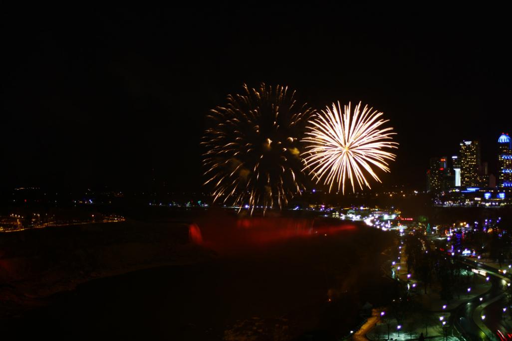 Would have liked to been lower but was on the 20th floor balcony, windy and cold, Usually I am lighting them at shows so it was a change actually watching these at Niagara Falls !