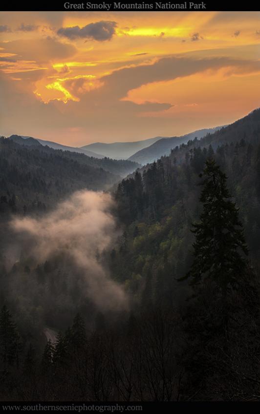 Best time to take a landscape in portrait orientation? Right after taking it in landscape orientation of coarse! Especially when the scene is as fluid as a Smoky Mountain sunset.