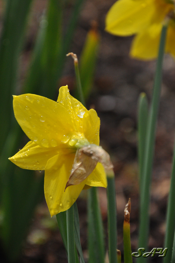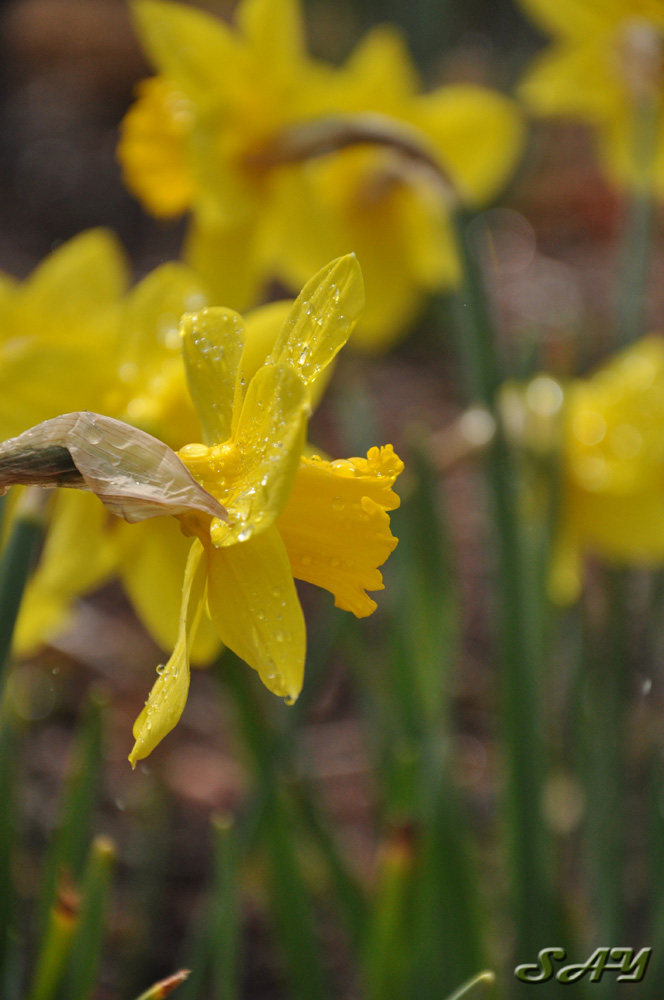 Since a number of people have posted them as a sign of spring, here are mine. The sun was in and out that afternoon, as was the rain.